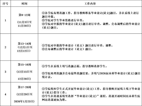 本科生院已于本周启动本科毕业设计(论文)选题、开题工作,详情可查看本科生院网“关于做好2026届本科毕业设计(论文)选题、开题工作的通知”(//jwc.zuoaiyingpian.com/vatuu/WebAction?setAction=newsDetail&viewType=web&newsId=F07DDC2F44E24D3F)。有以下事项请各位老师注意: