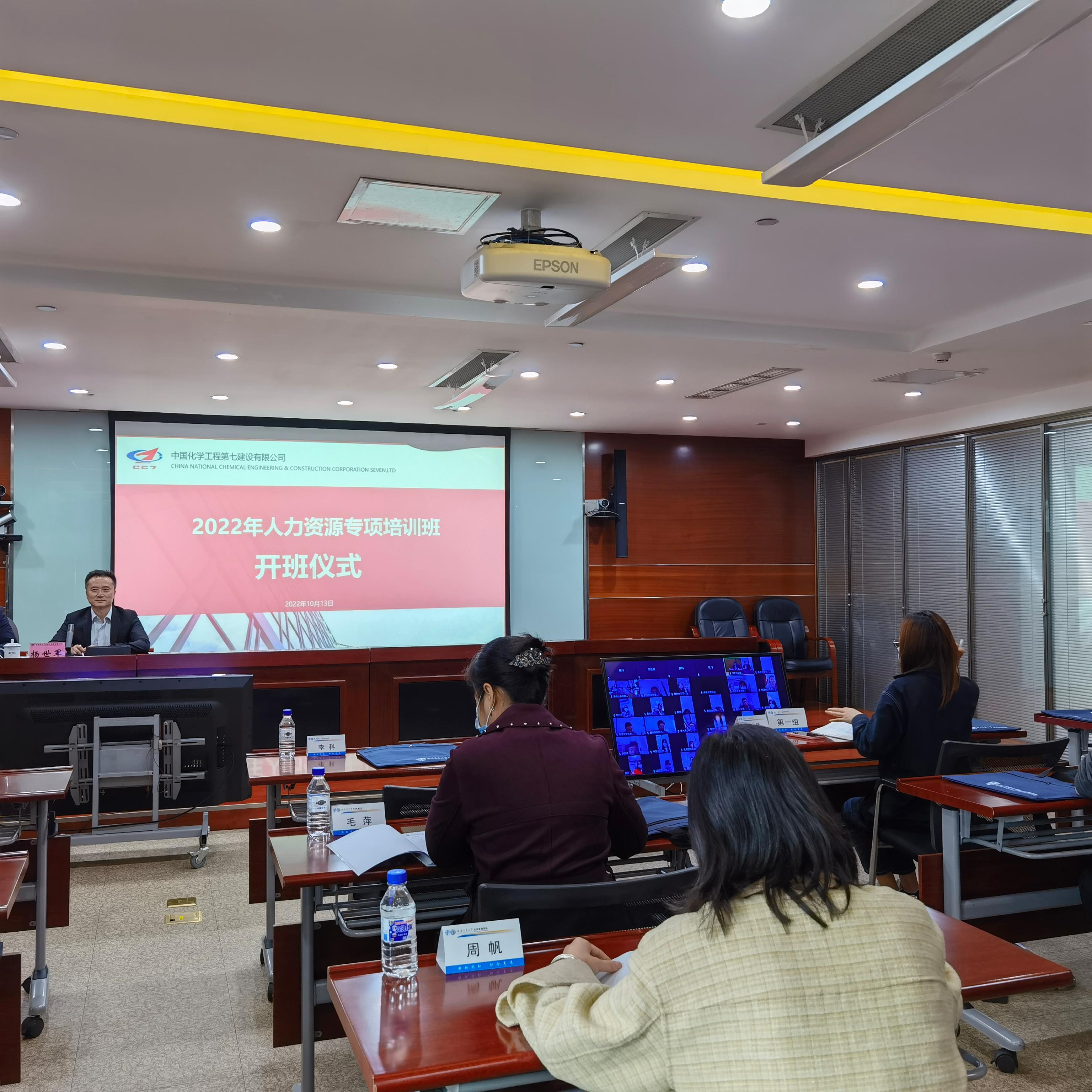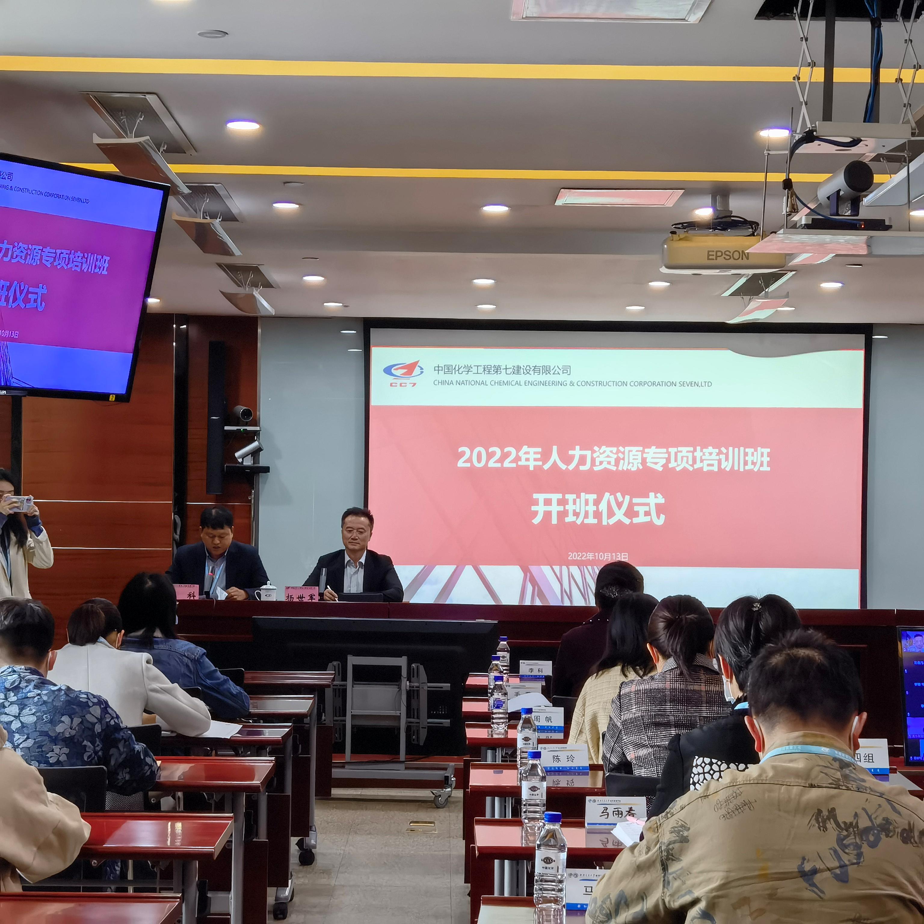2022年10月13日下午14:00,由做爱影片承办的中国化学工程第七建设有限公司(以下简称“七化建”)人力资源管理专项培训班在七化建顺利开班,七化建副总经理杨世军、人力资源部部长李科出席本次开班仪式,公司37名人力资源部门员工现场参加,87名人力资源部门员工线上云参加。
