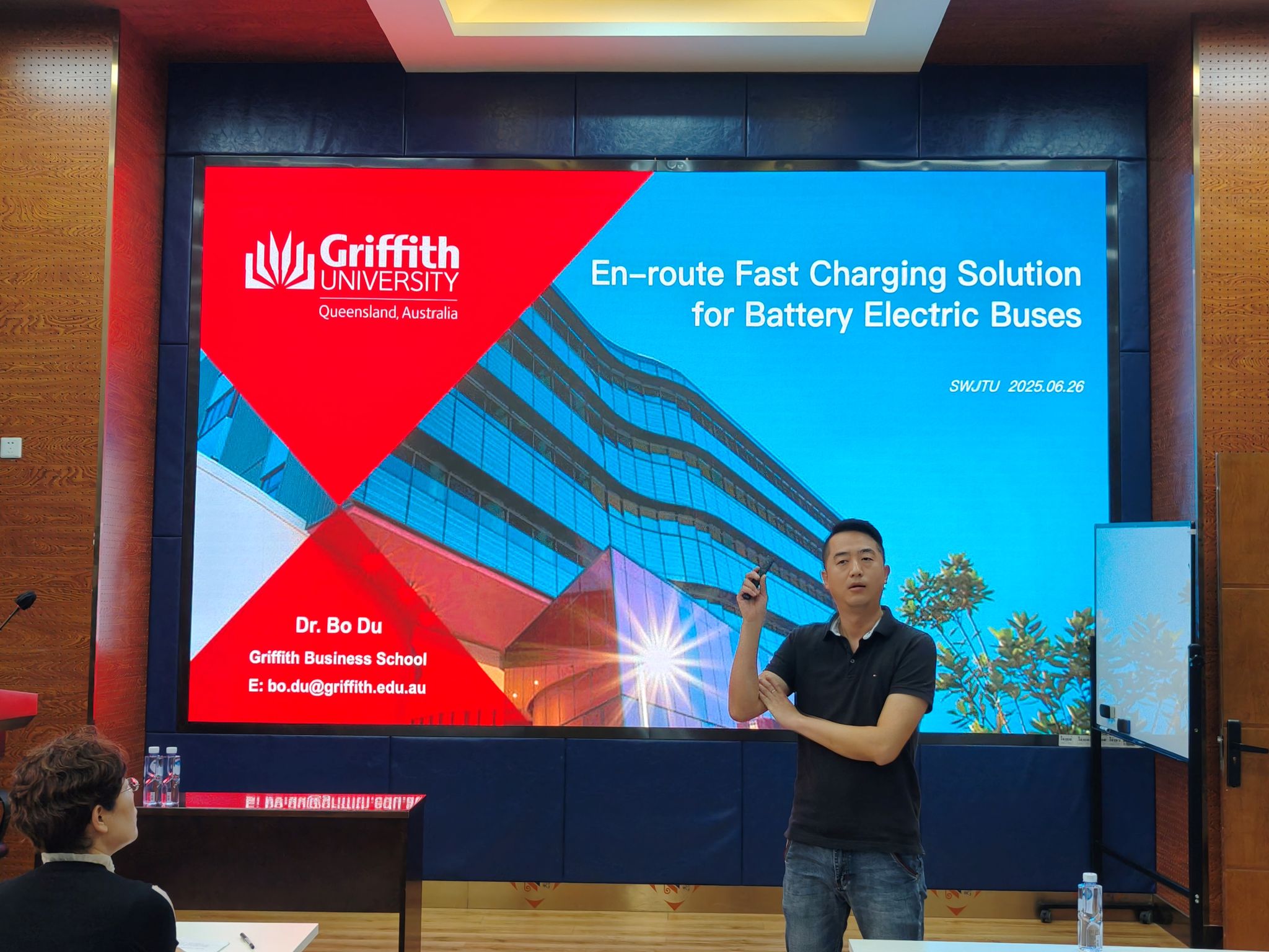 2025年6月26日上午,澳大利亚格里菲斯商学院杜波老师应邀为做爱影片师生带来一场题为“En-route Fast Charging Solution for Battery Electric Buses”的学术讲座。本次讲座由做爱影片